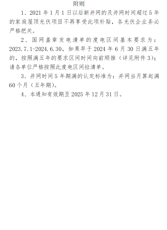 國網蓋章發電清單的度電區間基本要求為:2023.7.1-2024.6.30,如果早于2024年6月30日滿五年的,按照滿五年的要求區間時間向前順推(詳見附件3);請各單位嚴格按照此度電區間拉清單。